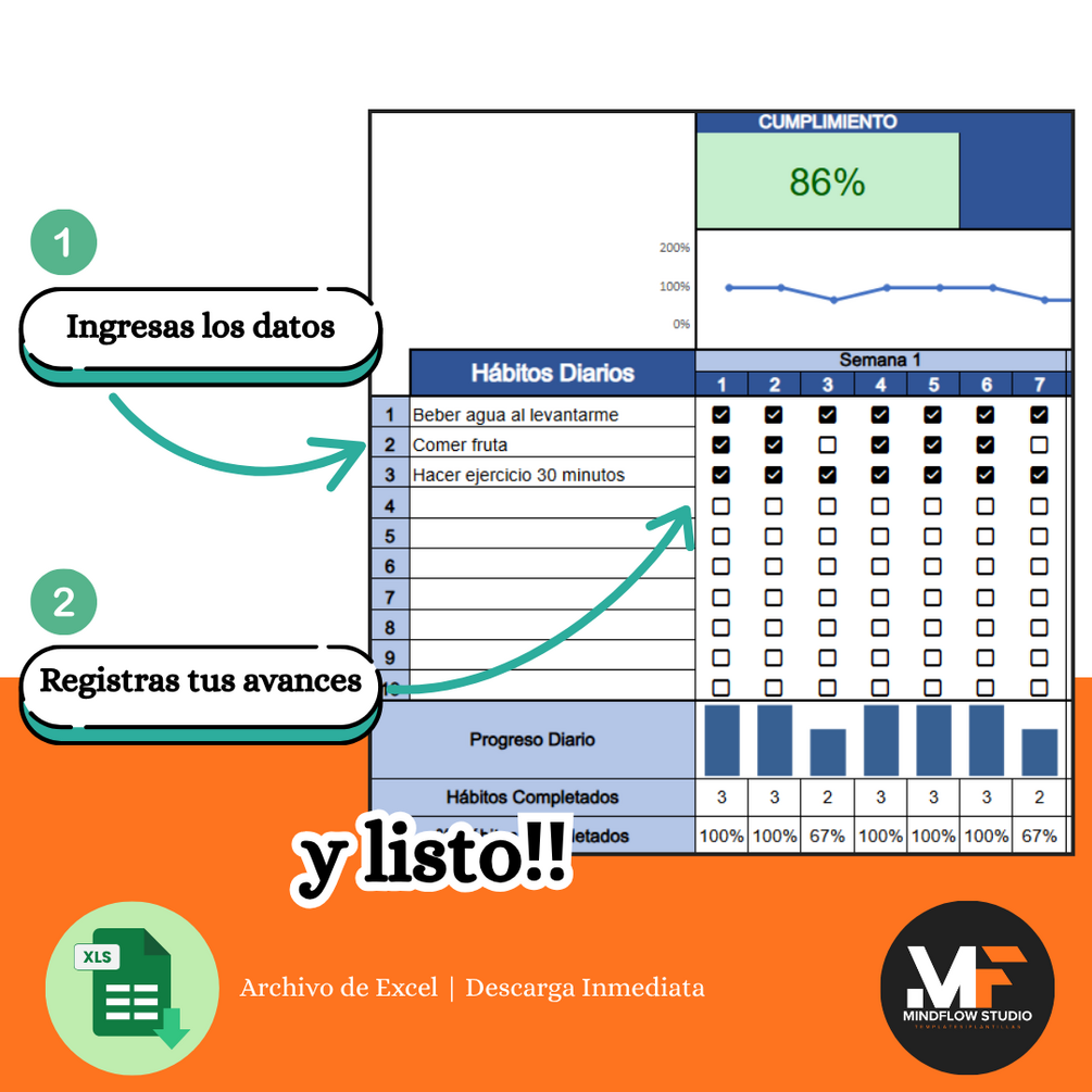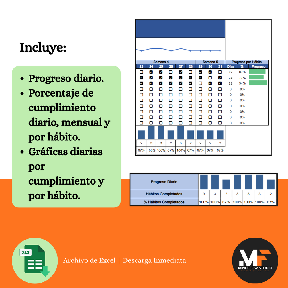 Ya sea que busques mejorar tu bienestar, aumentar tu productividad o impulsar tu crecimiento personal, este tracker convierte la construcción de hábitos en un proceso claro, motivador y fácil de mantener.